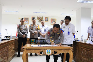 Bupati, Dr. Drs. Agus Istiqla, menyaksikan penandatanganan Nota Perjanjian Hibah Daerah (NPHD) dan berita acara serah terima hibah daerah kepada Satuan Brigade Mobil (Brimob) Polda Lampung, Pemprov Lampung, dan Pengadilan Agama Krui Kelas II